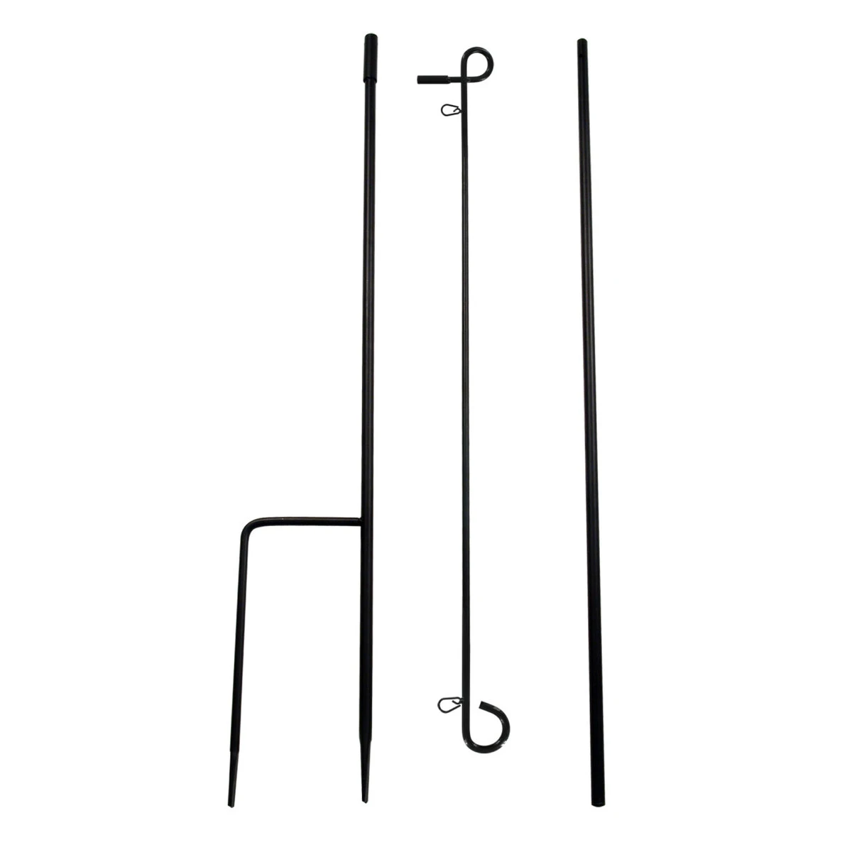In addition to its large inventory of garden flags, United States Flag Store also carries the Three-Piece Large Garden Flagpole made to be used with 28″ x 44″ decorative banner flags. This deluxe black garden pole will be an attractive addition to any yard or garden, and it can also enhance the appearance of a business property. The flagpole is made of steel and measures 75.75″ high x 37.25″ side. When installed, flagpole will be 1 foot deep in the ground. Order from United States Flag Store to ensure shipping within one to two business days.