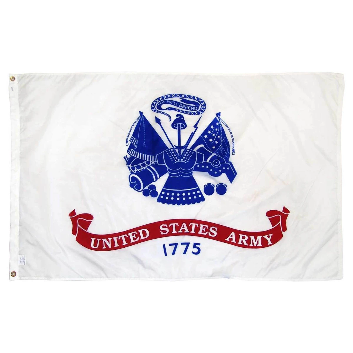 This top quality 2ft x 3ft Army flag is made in the USA by a leading flag company. Made from durable heavyweight nylon, they are finished with a strong canvas heading and 2 brass grommets for enhanced durability and security on the flagpole.
