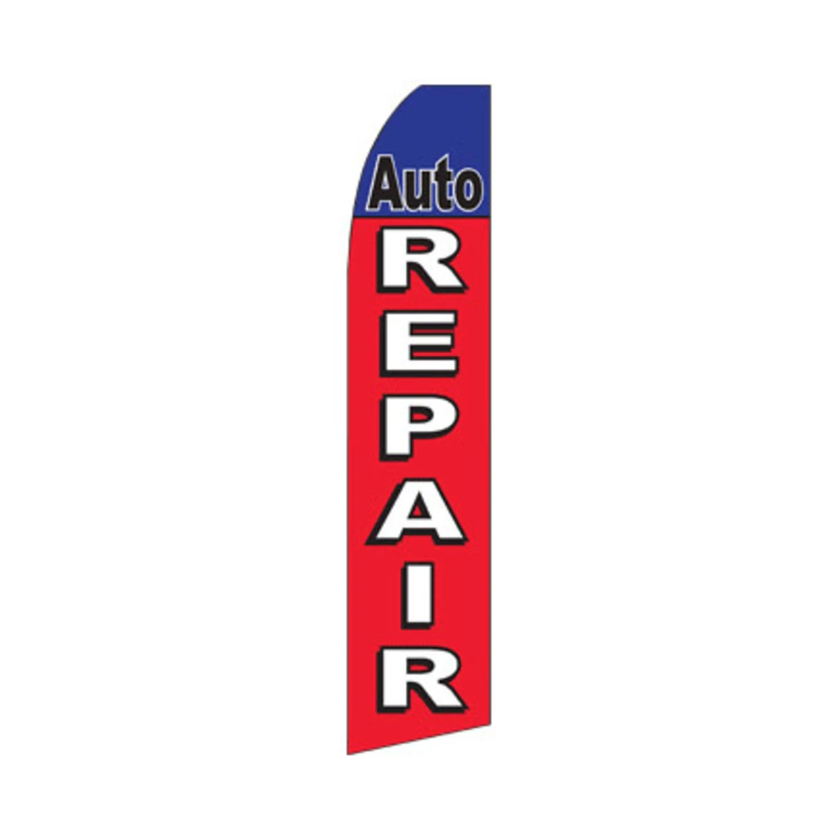 Call out to car owners with this Auto Repair Flag – a red and blue banner flag won’t go unnoticed! This swooper flag measures 11.5 x 2.5 feet and is made out of durable, knitted polyester. It flutters in the breeze and the fabric doesn’t wrap around the pole when it’s windy. This blade flag is fitted with a reinforced pole sleeve to attach it onto a pole for more height. You can shop from our wide range of advertising flags in many designs, sturdy poles, and bases for your business.