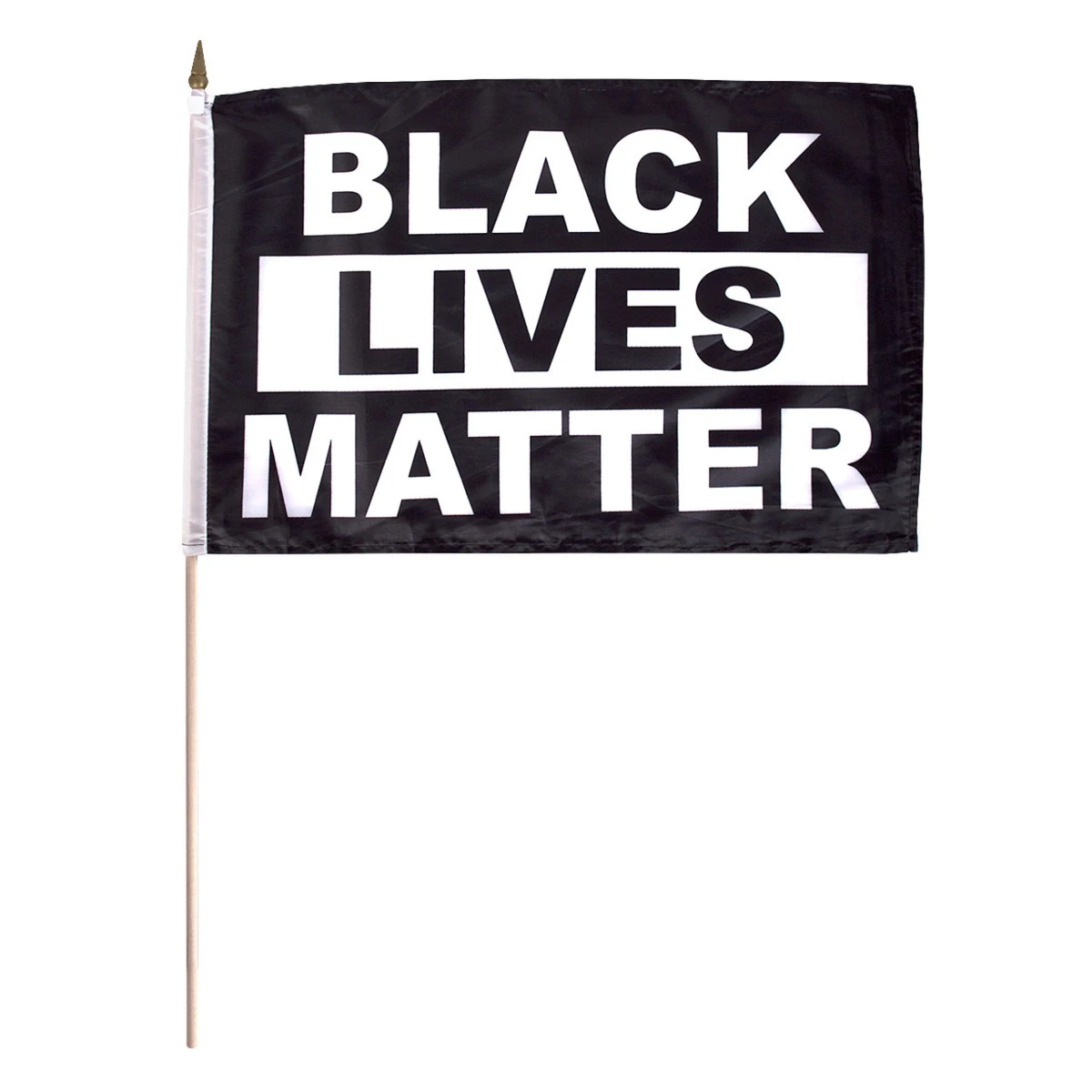 Show your support for the movement! This 12″x 18″ Black Lives Matter Stick flag is made from polyester and is single sided with the image on front shown through to the back. This flag is made using a top quality polyester and mounted to a 24″ staff. Made in China