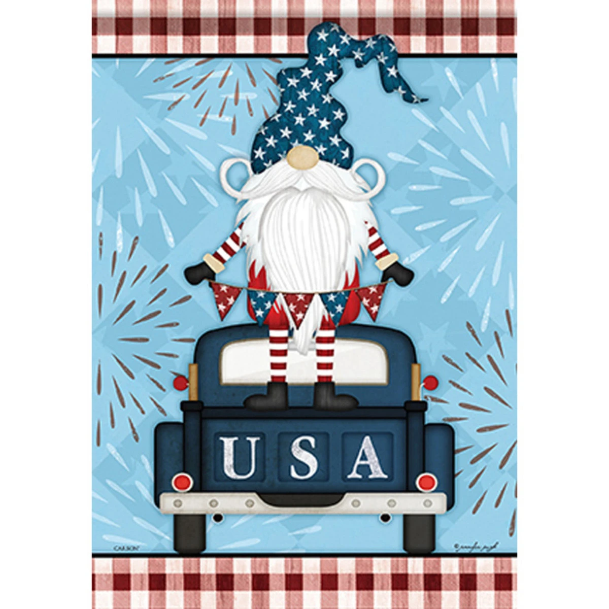 An excellent way to welcome visitors, this patriotic flag adds a unique, welcoming touch to your home. The decorative flag features a cute gnome on a truck, a beautiful background design, and a ‘USA’ message written across it with beauty that complements the overall design. The flag measures 28″ x 40″.