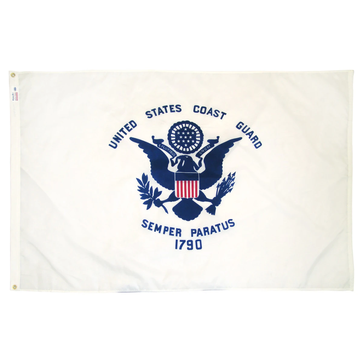 Our printed Coast Guard Nylon 3′ x 5′ flag is very attractive, durable and an awesome value. These Coast Guard flags are printed on a durable nylon fabric that does well in the weather. Great for use outdoors or indoor. We also offer quantity discounts so the more you buy the more you save! Makes a great gift idea. These flags have a nylon header and 2 brass grommets. It is comparable to our US Made nylon flags at a much better price. These flags are made outside of the US exclusively for Online Stores Inc., to our specifications. We stock this flag.