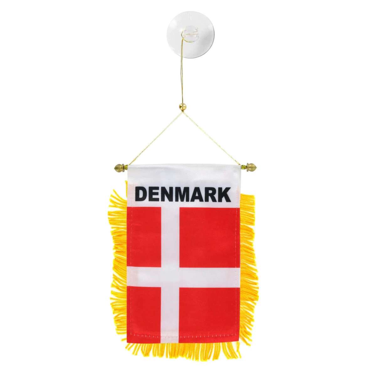 This Denmark Mini Window Banner is a great way to show love for your country wherever you go! This little banner is printed on a polyester material and comes complete with a crossbar, gold hanging cord and a suction cup. Great for car windshields,hanging from your rear view mirror or hanging on windows.