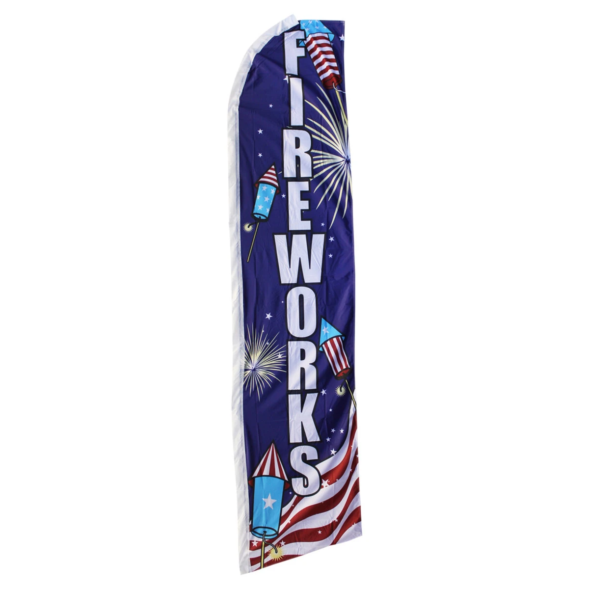 This Fireworks Swooper Flag is made from a knitted polyester that is built to withstand winds over time. The design of the flag easily catches peoples attention and it doesn’t wrap around the pole. Flag measures 11.5ft x 2.5ft.