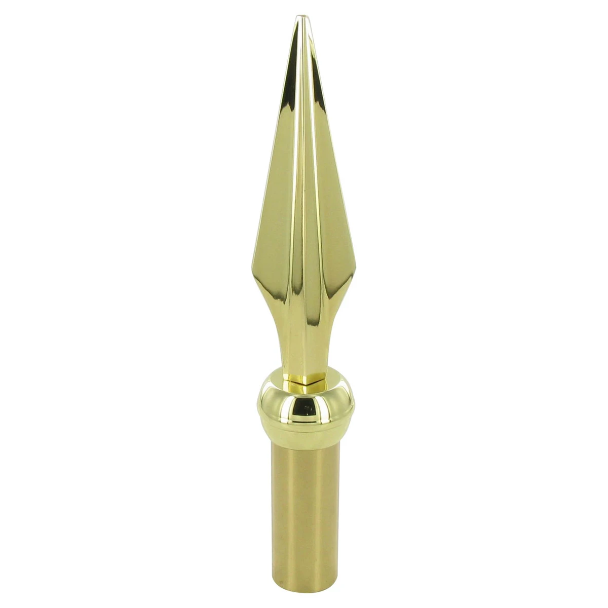 This is an electroplated gold metal spear that sits on top of your flagpole. Comes with a brass ferrule to fit 1.25 inch poles.