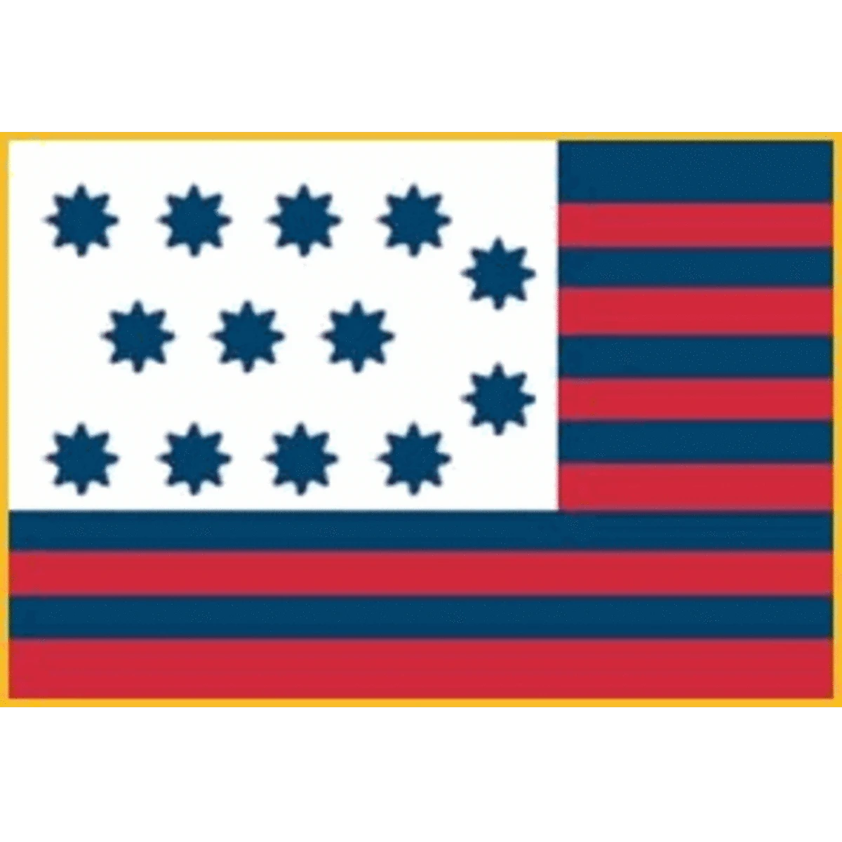 A quality printed polyester 3’x 5′ historic flag. This flag is finished with a canvas or nylon heading and 2 brass grommets. This flag is not as durable as the nylon version and may be made outside of the US.