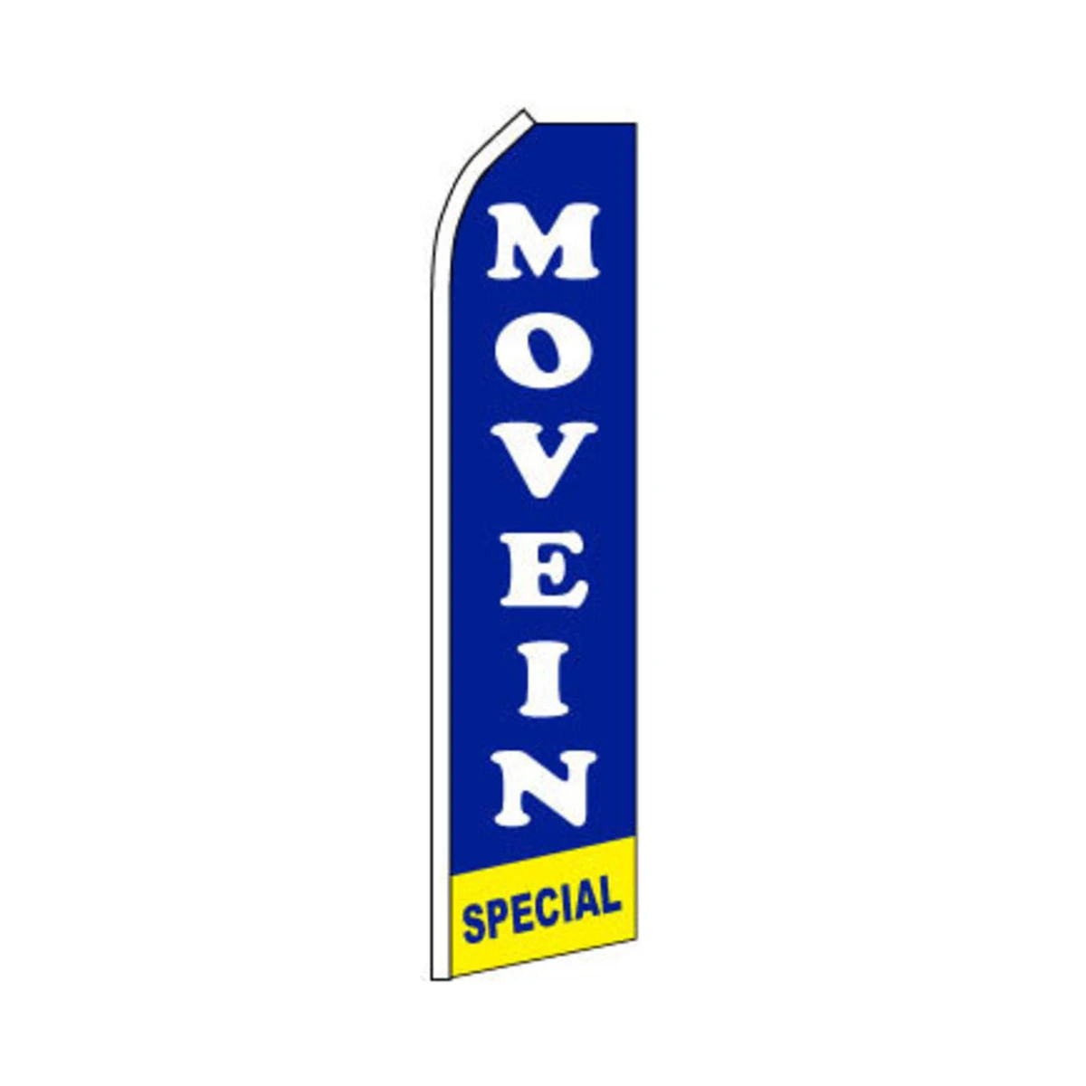 This Move In Special Swooper Flag is made from a knitted polyester that is built to withstand winds over time. The design of the flag easily catches peoples attention and it doesn’t wrap around the pole. Flag measures 11.5ft x 2.5ft.