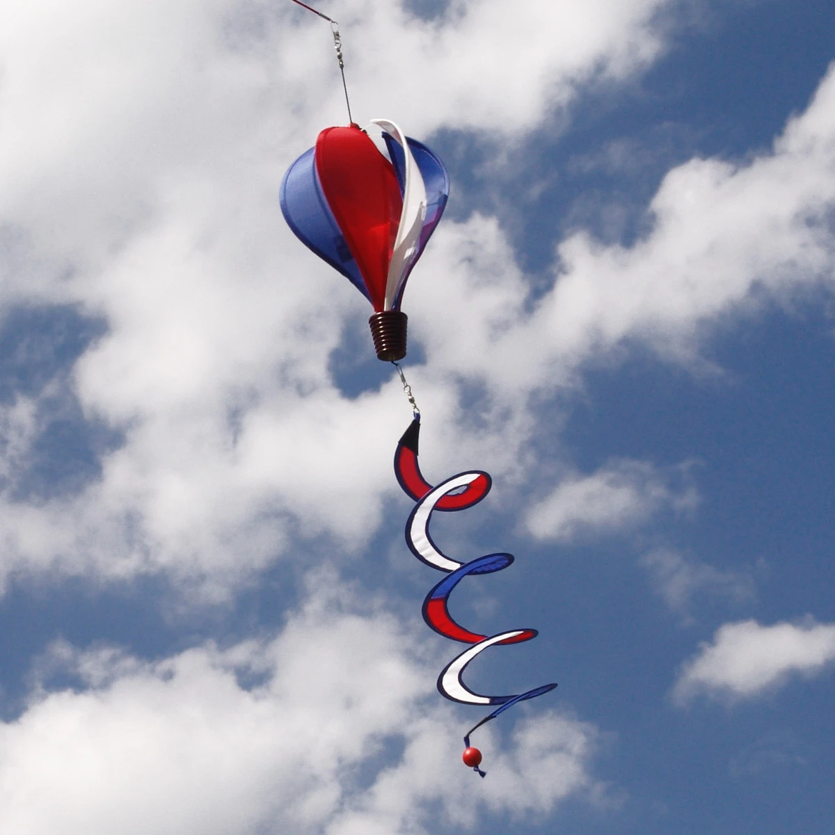 This Mini Patriotic USA Balloon Twister is made from a great weather resistant nylon and fiberglass rods for durability. You can hang it form the snap swivel that is provided with it and watch it spin and dance in the breeze! Measures: 7″ x 40″