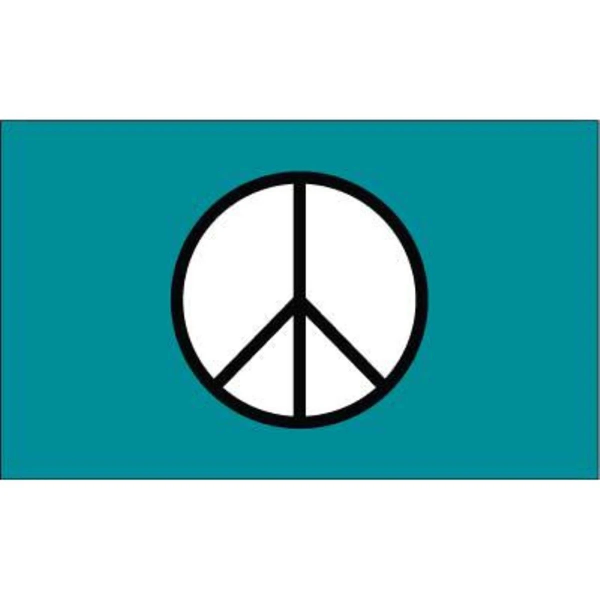 A quality printed Peace Flag is 3′ x 5′ and made of 100% polyester. It is finished with a strong canvas heading and 2 metal grommets. This flag may be made outside of the US. We stock this flag.