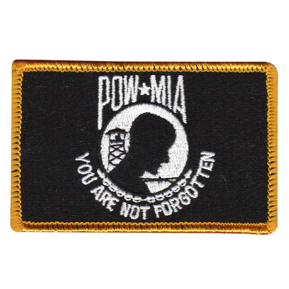 Our POW MIA Flag patch is high quality, machine embroidered, and very detailed. Machine embroidering enables precise duplication of the fine details found in many flags. These patches have a vinyl backing so they can be sewn to your garment or ironed on.