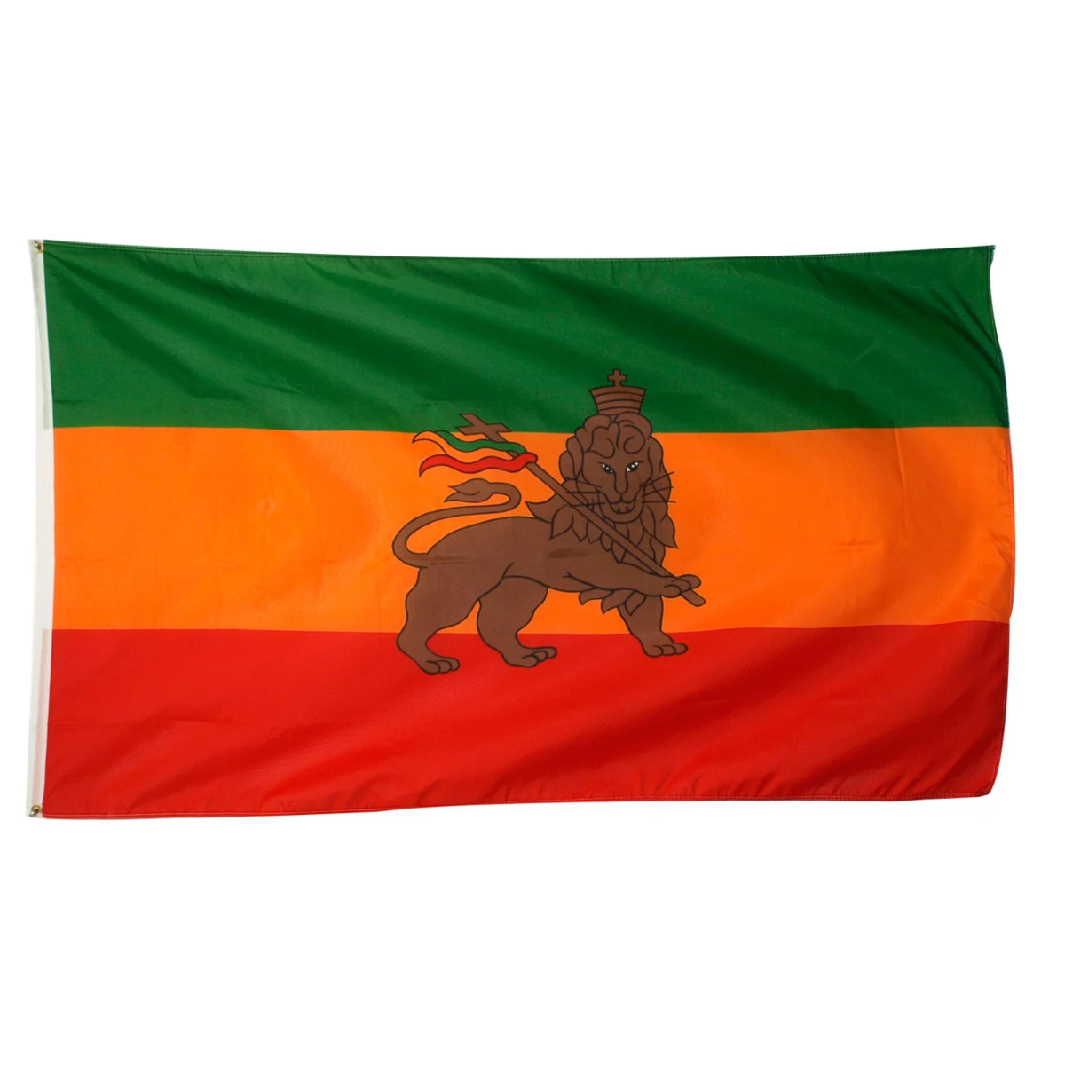The Rasta Flag was once the flag of Ethiopia and was used during Selassie’s reign. This brightly colored flag features the conquering lion of Judah which is a symbol of the Ethiopian monarchy, with green, yellow and red. Also known as Rastafarian or Rastafari flag. 3 X 5