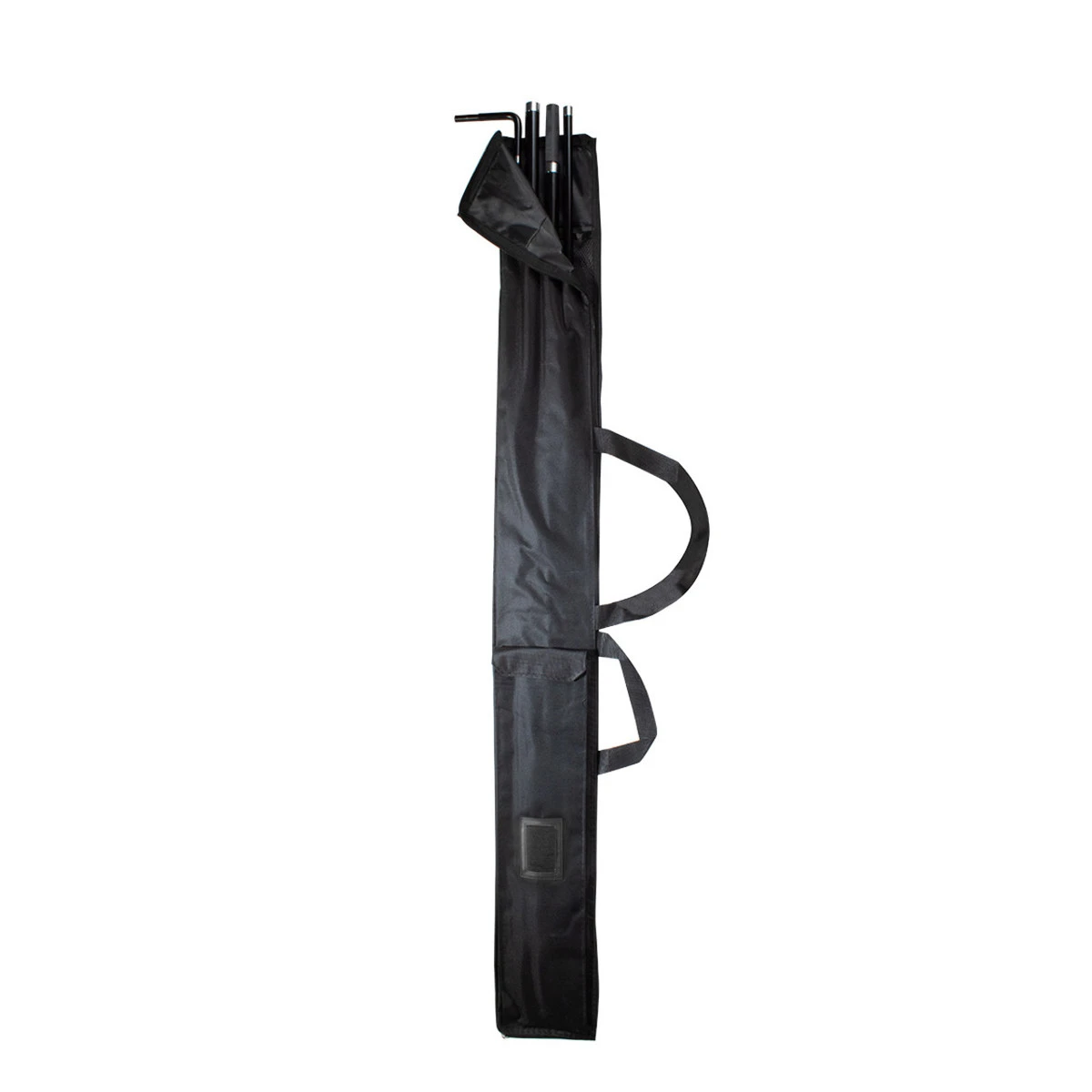 This pole works with our Ground Spike, Crossbase & Waterbag Stand, Tire Base, Triangle Ground Spike, and Blade & Teardrop Base.