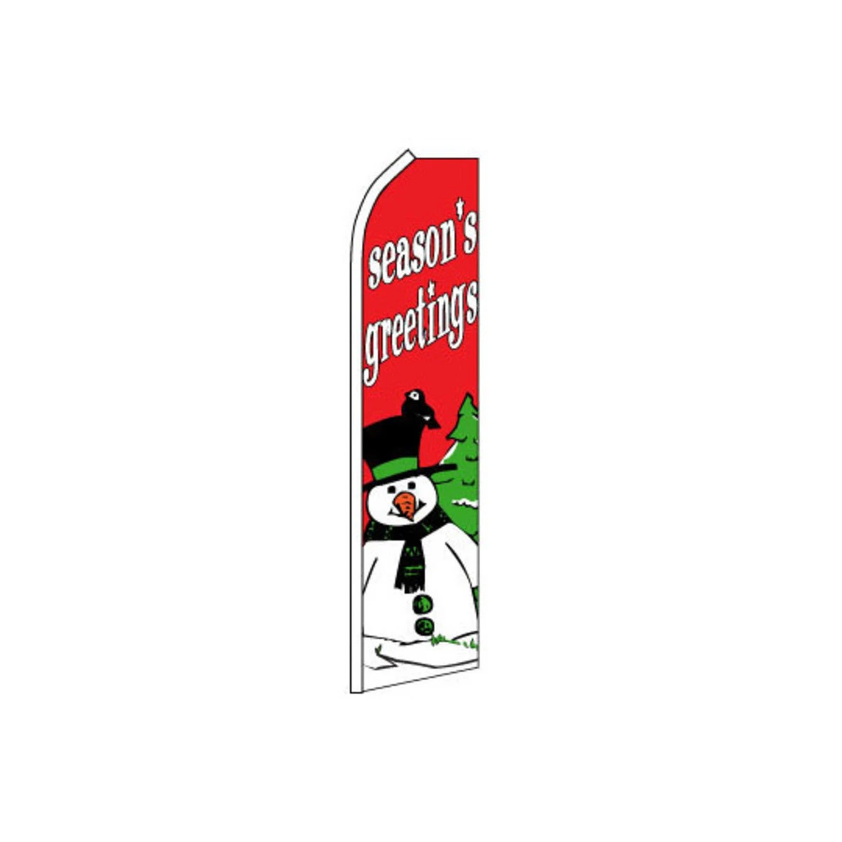 This Seasons Greetings Swooper Flag is made from a knitted polyester that is built to withstand winds over time. The design of the flag easily catches peoples attention and it doesn’t wrap around the pole. Flag measures 11.5ft x 2.5ft.