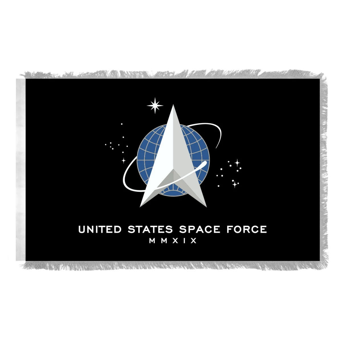Top quality 4’x 6′ Space Force flag made in the USA by a leading company from durable heavyweight nylon. They are finished with a strong canvas heading and 2 brass grommets. These flags look great both outdoors and indoors.