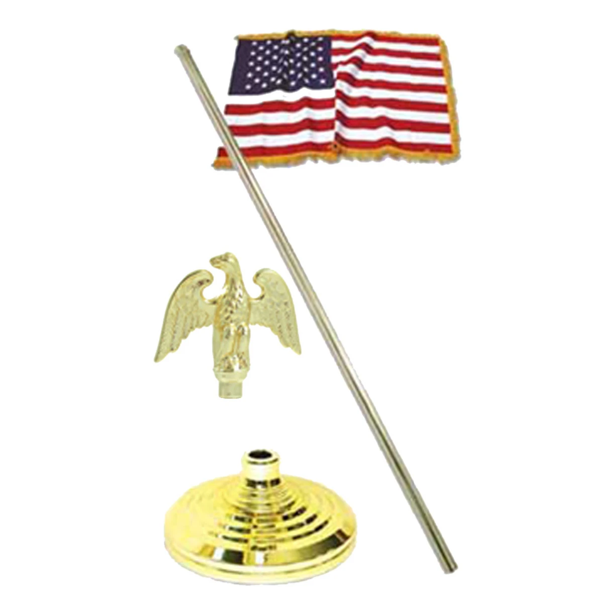 Decorate an indoor corridor, entrance way or vestibule with the 9′ Indoor Oak Flag Pole Kit available at Online Stores. Several gold pole-topping ornaments, accessories and fittings, as well as a 4′ x 6′ U.S. nylon flag with gold fringe are included so that you can customize your display exactly as you see fit. The oak wood flag pole has been finished with an attractive stain. Order from Online Stores and get the kit with free shipping.