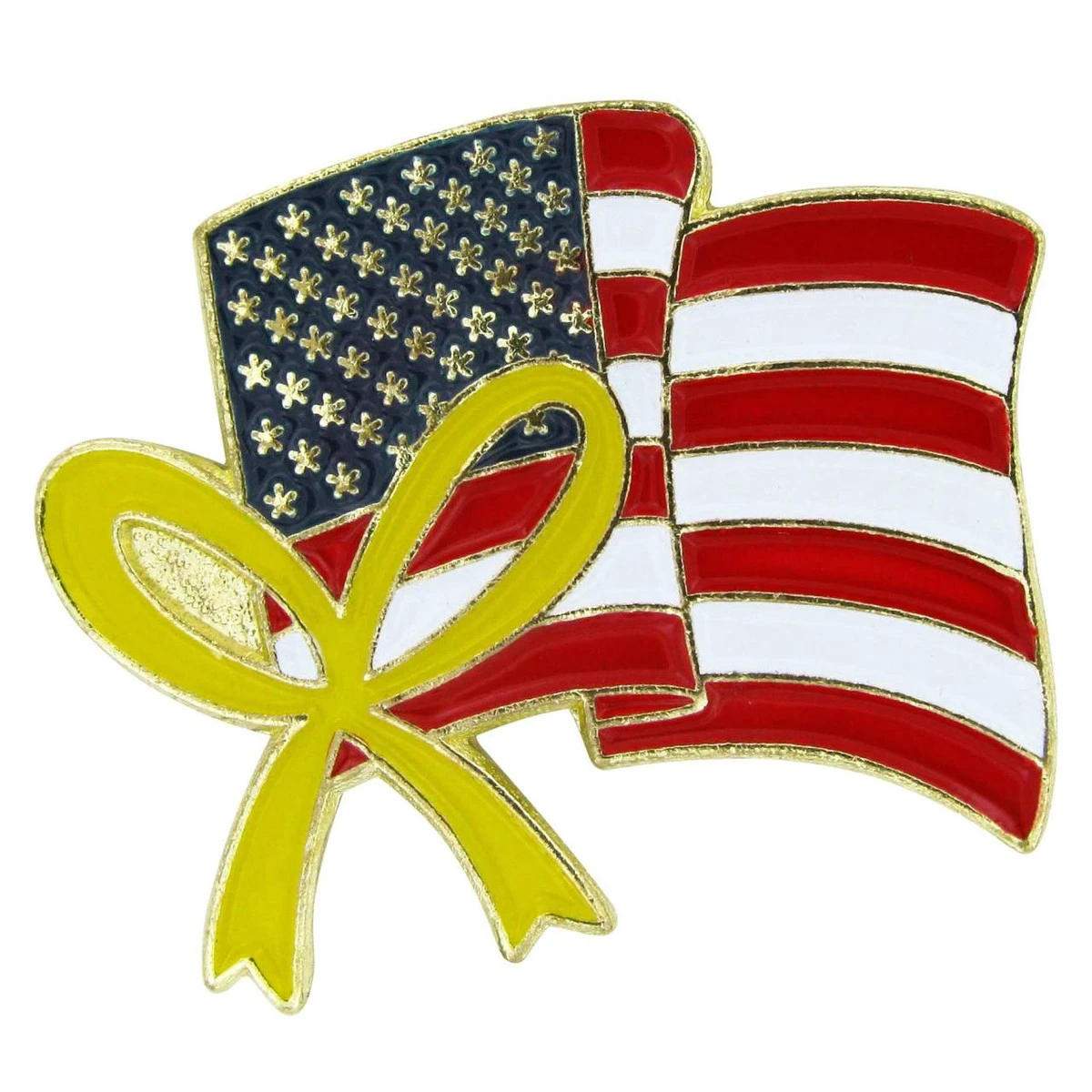 A high quality American flag lapel pin, with an all gold metal lacquered design and a clutch pin. Size 0.75″ wide x 0.75″ tall.