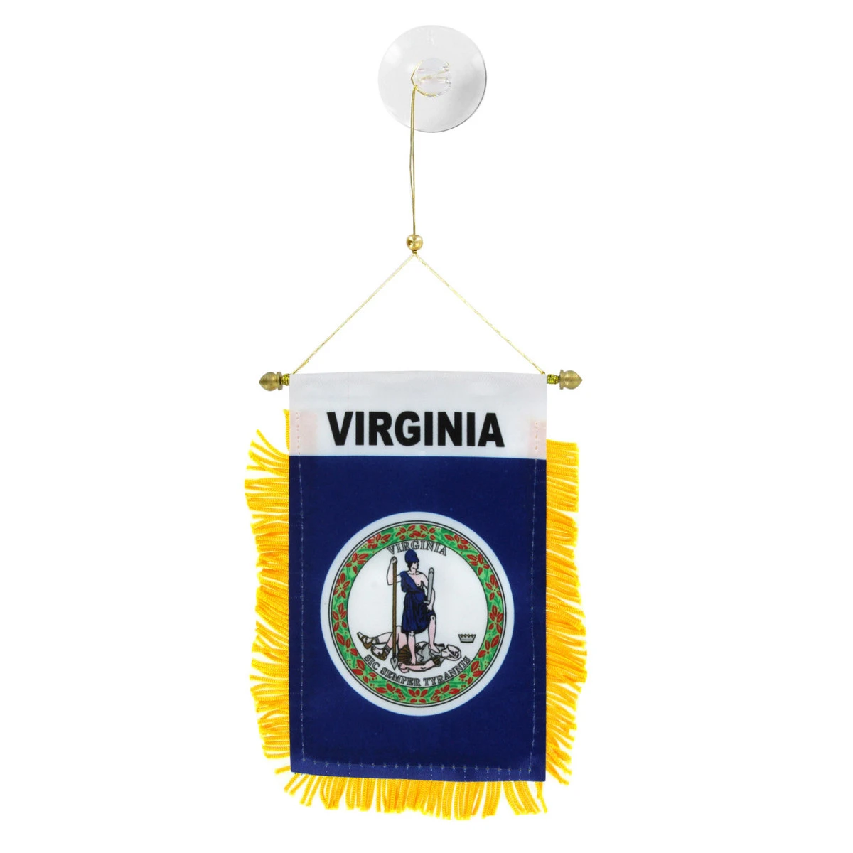 This Virginia Mini Window Banner is a great way to represent your state wherever you go. Complete with crossbar, gold hanging cord, and a suction cup.