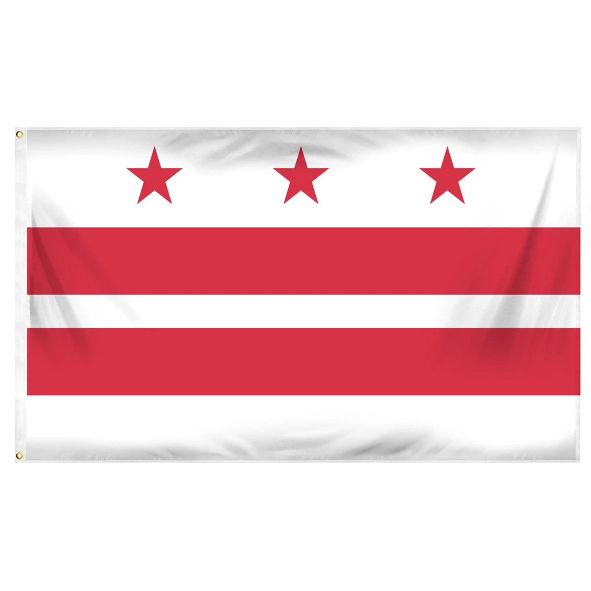 This 3ft x 5ft Washington D.C. Flag is a printed flag that is made of a good quality polyester. It is finished with a strong header and brass grommets, can be used inside or outside. At great prices like these you won’t want to pass it up.